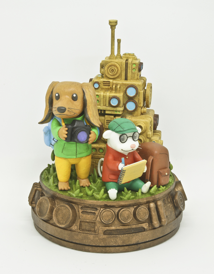 今回は同じモチーフの絵と立体をメインに梅村のファンタジー世界の作品を展示します。